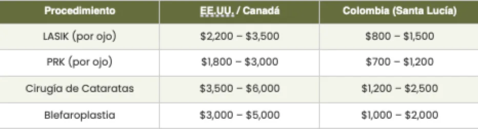 Para un LASIK bilateral (ambos ojos), eso representa un ahorro de $2,000–$4,000 USD — suficiente para cubrir el viaje completo a Medellín y regresar a casa con dinero de sobra.