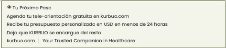 • Recibe tu presupuesto personalizado en USD, incluyendo el costo del procedimiento, la evaluación preoperatoria y tu kit completo de medicamentos postoperatorios.