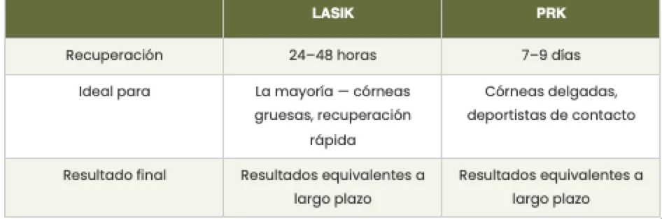 Tanto el LASIK como el PRK son procedimientos de corrección visual con láser, y ambos están disponibles en Santa Lucía. Las principales diferencias: