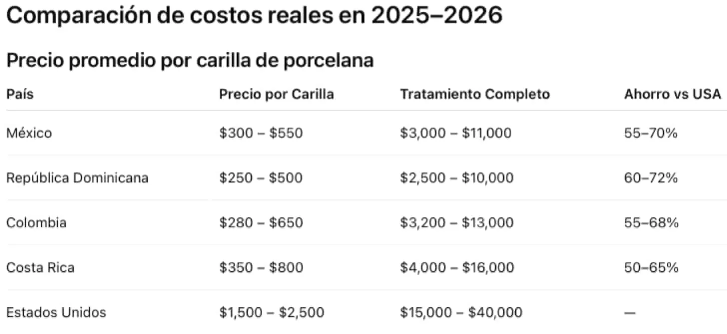 📊 Fuente: International Dental Cost Comparison Reports 2025 + clínicas acreditadas LATAM